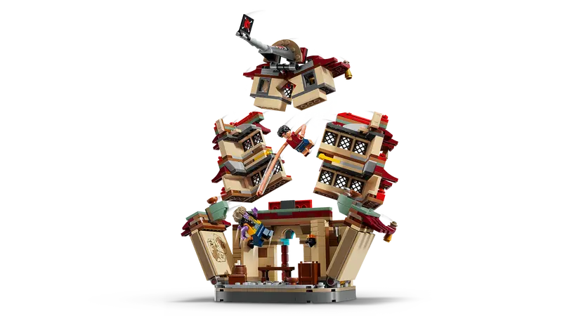 The building set comes with minifigures of Luffy – who comes with arm-lengthening pieces – Nami, Usopp, Arlong and Chu. Kids can collapse the pagoda model during battle by tapping it firmly on top, and the shooting gallery has fun targets for kids to aim at with stud-shooters. Villainous Arlong can be placed on a throne inside the shark attack building. Chu can get a drink at the shack, and the forest contains an iconic ketchup bottle. This playset also contains stud-shooters and accessories, including 3 'Wanted' posters. For added digital fun, builders can zoom in, rotate models in 3D and track their progress using the intuitive LEGO Builder app. Set contains 926 pieces.